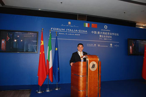 7月4日代表团启程,7月6日下午中国经贸投资代表团参加了中意经贸合作论坛暨企业洽谈会,下午三点(罗马时间)中国国家主席胡锦涛和意大利总理贝鲁斯克尼一起到达会场,意大利总理贝鲁斯克尼发表讲话,对胡主席及中国经贸投资代表团的到来表示热烈的欢迎,中意两国同是历史悠久文化灿烂的伟大国家了,四百多年前,意大利旅行家马可波罗曾经到达中国,那时中国和意大利的经贸往来就已经十分频繁,中意两国的经贸合作有非常好的历史和未来。胡主席发表了重要讲话,并对中意两国的经贸合作提出五点建议。